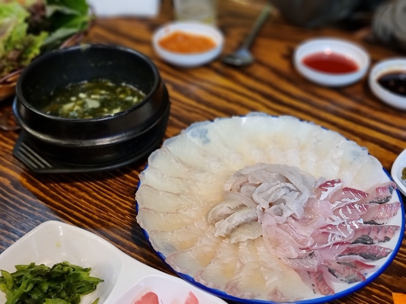 아주 맛있는 숙성회에 소주도 한 잔 했고