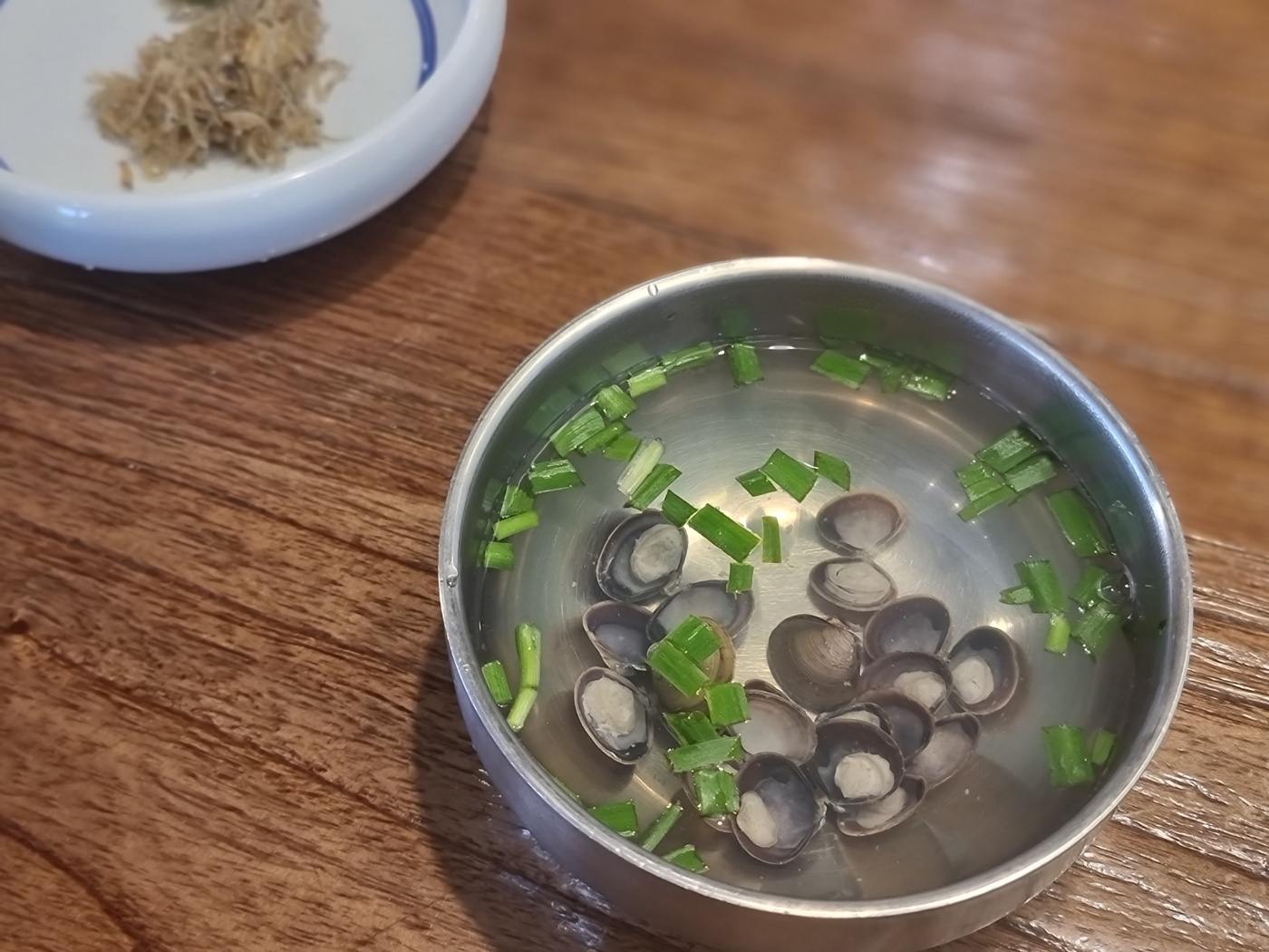 기본 반찬으로 조갯국이 나왔는데, 이게 참 맛있었다.