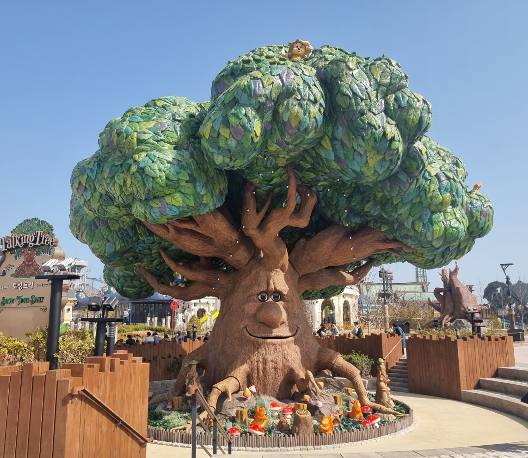 부산 롯데월드의 시그니처 어트랙션인 토킹 트리가 보인다.