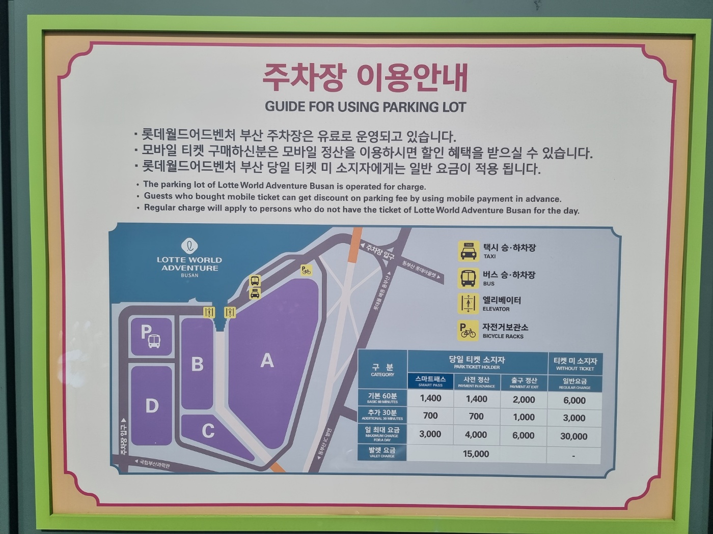 주차장 이용안내 판을 보니 상당히 넓은 주차장임을 알 수 있었다.