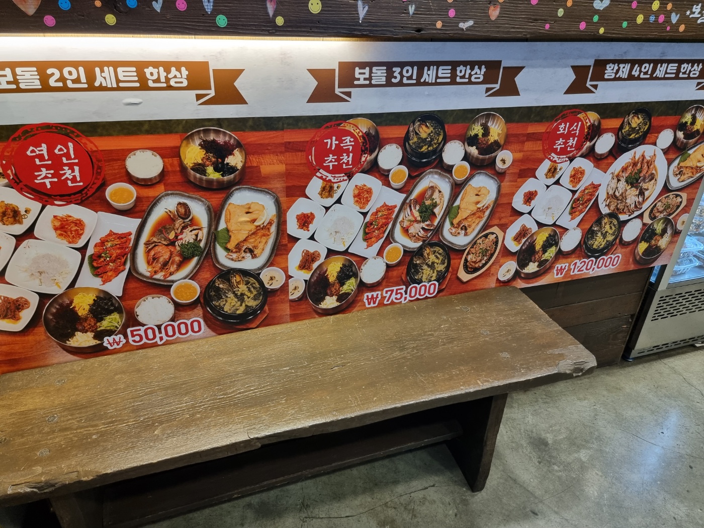 우리는 세 명에서 가서 보돌 3인 세트 한상을 주문했다.