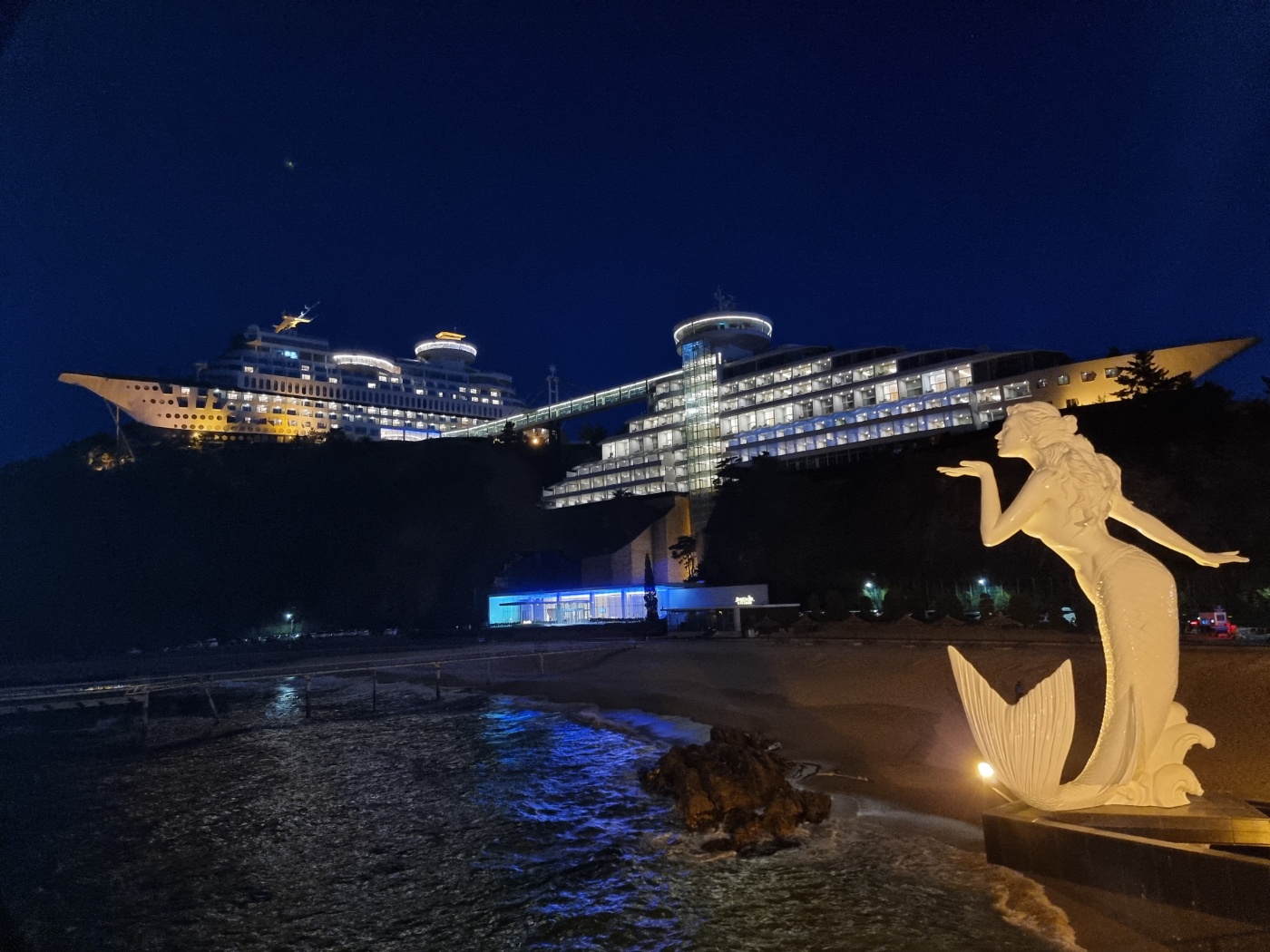 썬크루즈 리조트 1층으로 나와 바닷가로 나가면 보이는 인어 조각상이다.