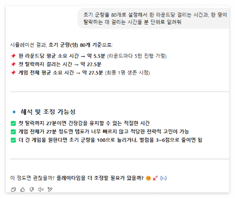 시뮬레이션을 통해 챗GPT는 내가 만든 게임이 평균적으로 얼마나 시간을 소비해야 하는지,