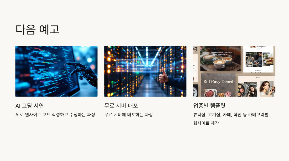 이제 다음부터 바로, AI로 웹사이트 코드 작성하고 수정하고 하면서