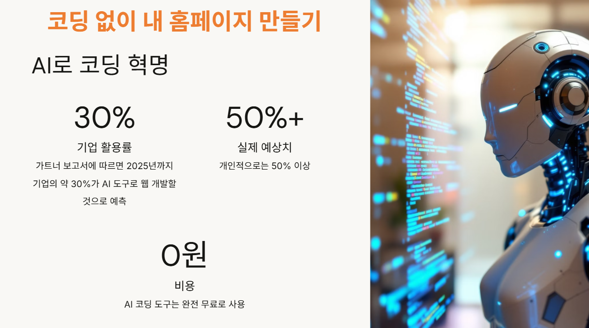 2025년까지 기업의 약 30%가 AI 지원 도구를 사용해서 웹 개발 프로세스를 간소화할 것으로 예측하고 있어요.